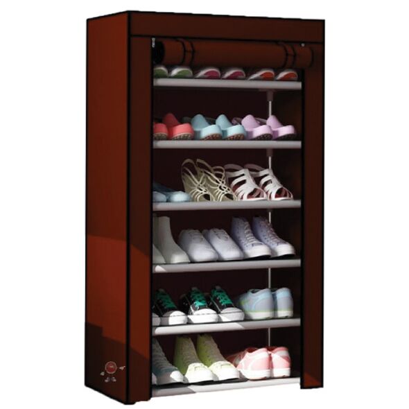 Πολυλειτουργική Υφασμάτινη Αδιάβροχη Παπουτσοθήκη με 6 Ράφια και Μεταλλικό Σκελετό 60x30x108εκ Καφέ
