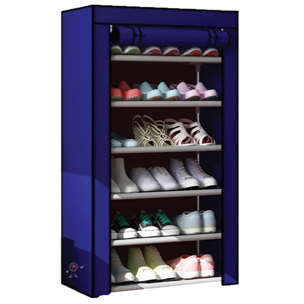 Πολυλειτουργική Υφασμάτινη Αδιάβροχη Παπουτσοθήκη με 6 Ράφια και Μεταλλικό Σκελετό 60x30x108εκ Μπλε
