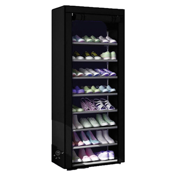 Πολυλειτουργική Υφασμάτινη Αδιάβροχη Παπουτσοθήκη με 8 Ράφια και Μεταλλικό Σκελετό 60x30x145εκ Μαύρο
