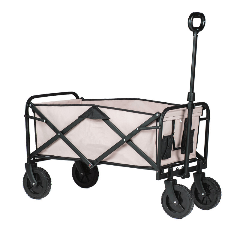 Πολυλειτουργικό Αναδιπλούμενο Τρόλεϊ Καρότσι Κάμπινγκ με 4 Τροχούς για Δύσβατες Διαδρομές, Μεταλλικός Σκελετός & Πτυσσόμενη Λαβή - Μπεζ 68x40x46εκ