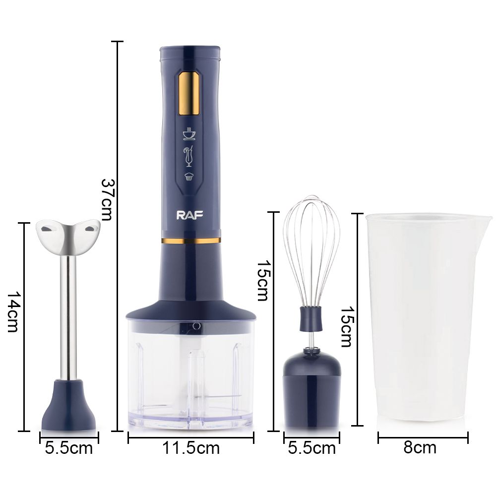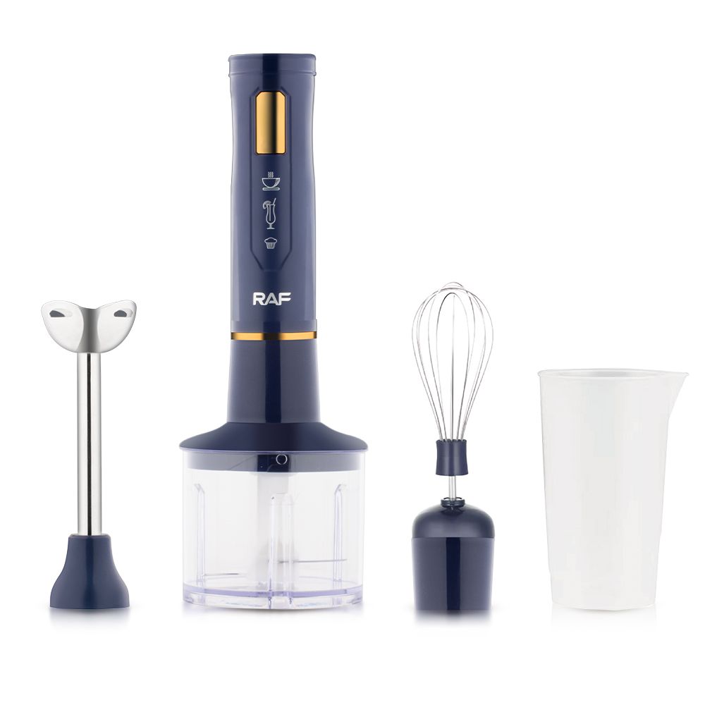 Πολυλειτουργικό μπλέντερ RAF 4 σε 1 με ισχύ 400W και κανάτα 700ml. Διαθέτει σύστημα 4 λεπίδων για αποτελεσματική ανάμειξη, 2 ταχύτητες και εργονομικό σχεδιασμό. Ιδανικό για smoothies, σάλτσες και καθημερινές εργασίες κουζίνας χωρίς πολλές συσκευές.