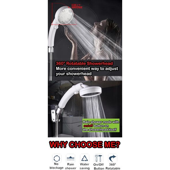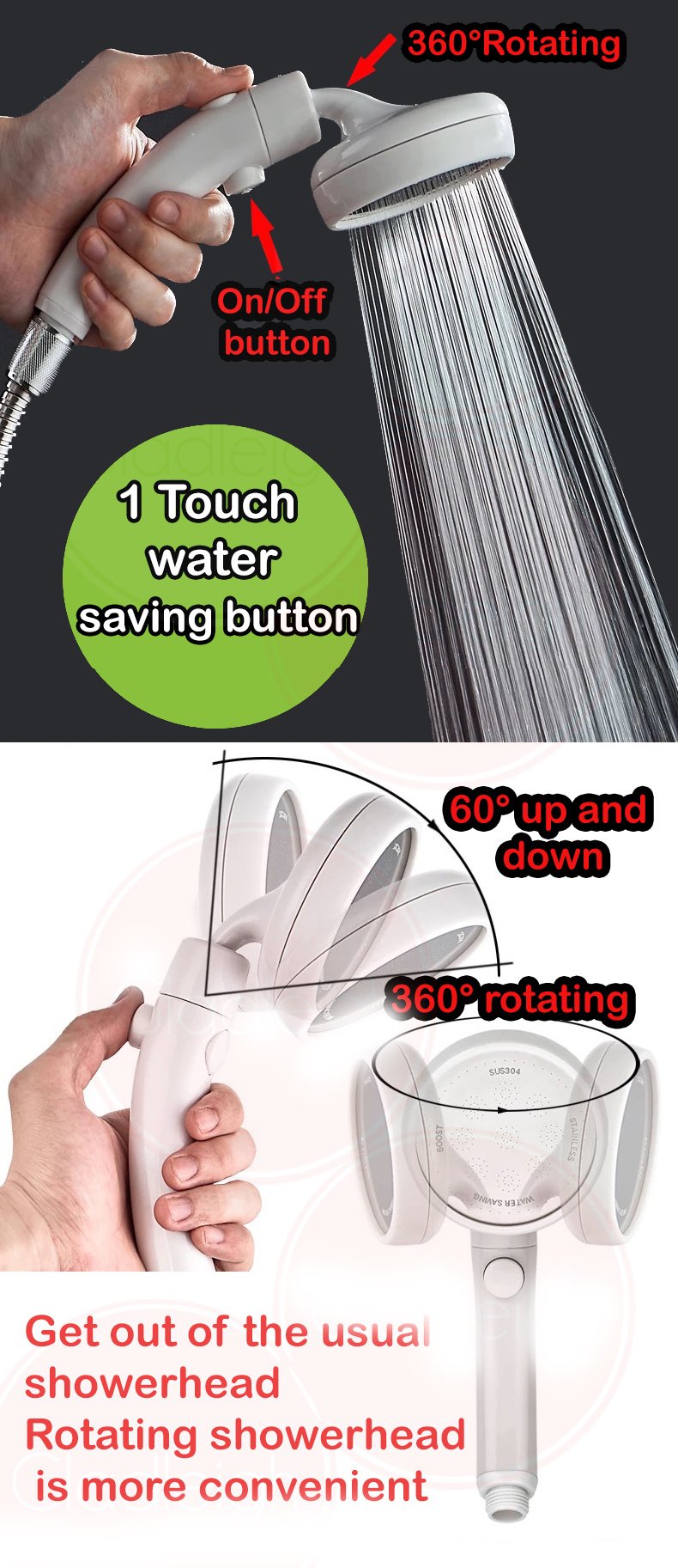 Πολυλειτουργικό Τηλέφωνο Ντους με Διακόπτη Εξοικονόμησης Νερού 360ᵒ - Life Shower Adjustable Angle