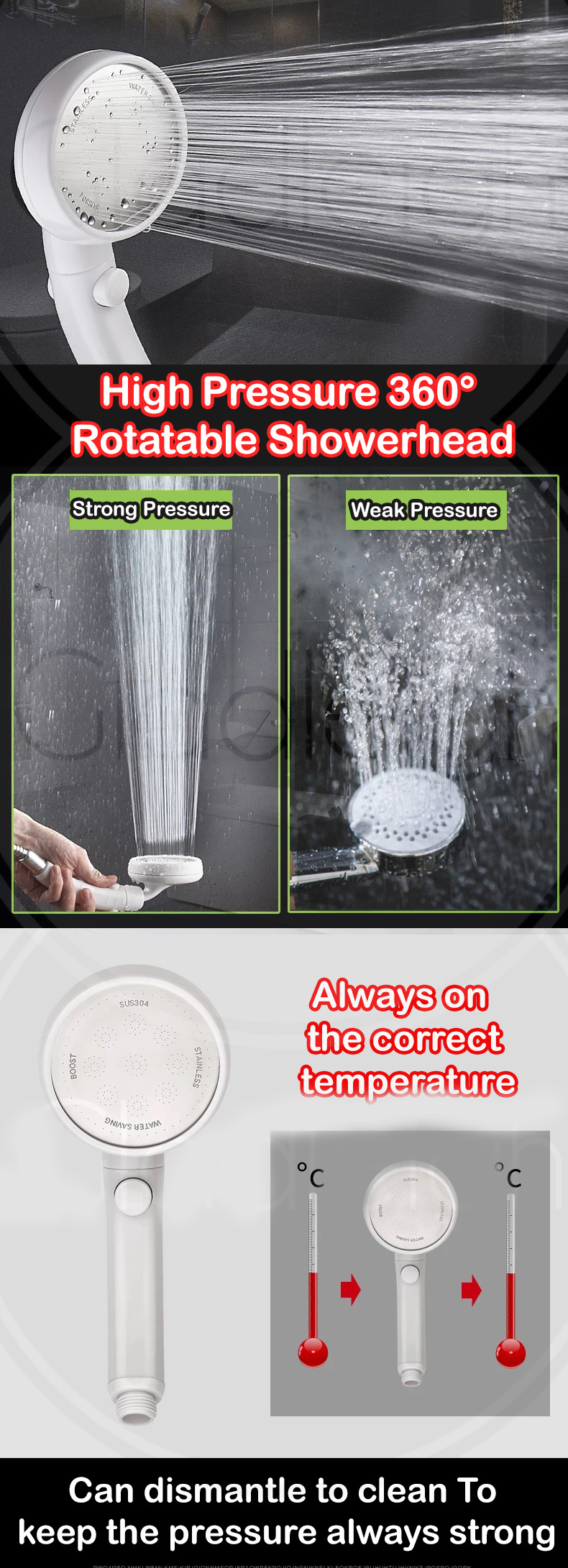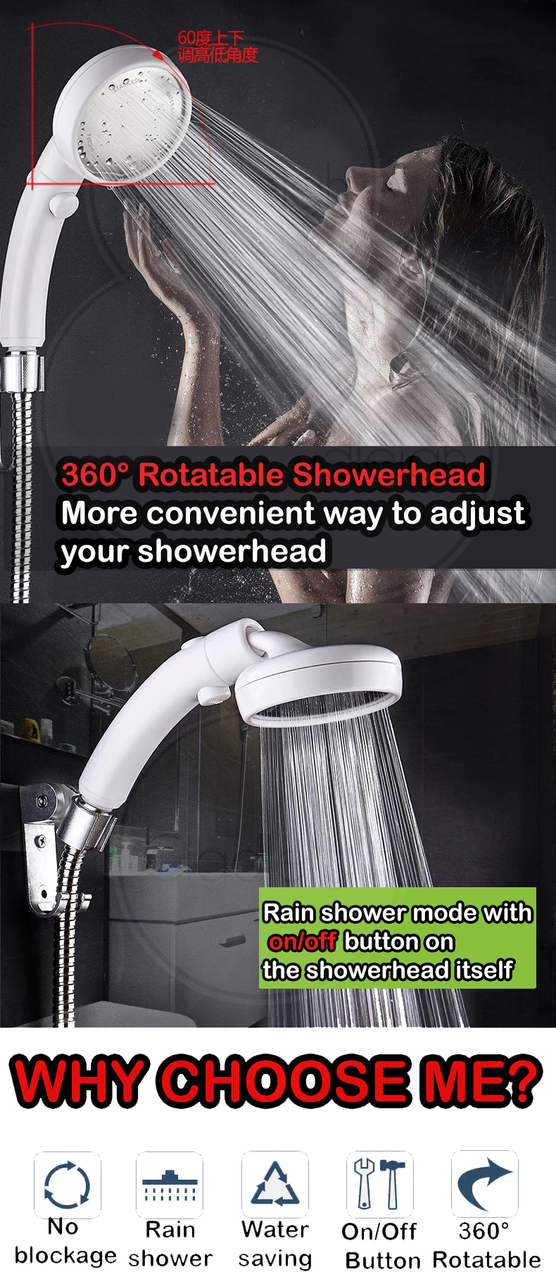 Πολυλειτουργικό Τηλέφωνο Ντους με Διακόπτη Εξοικονόμησης Νερού 360ᵒ - Life Shower Adjustable Angle