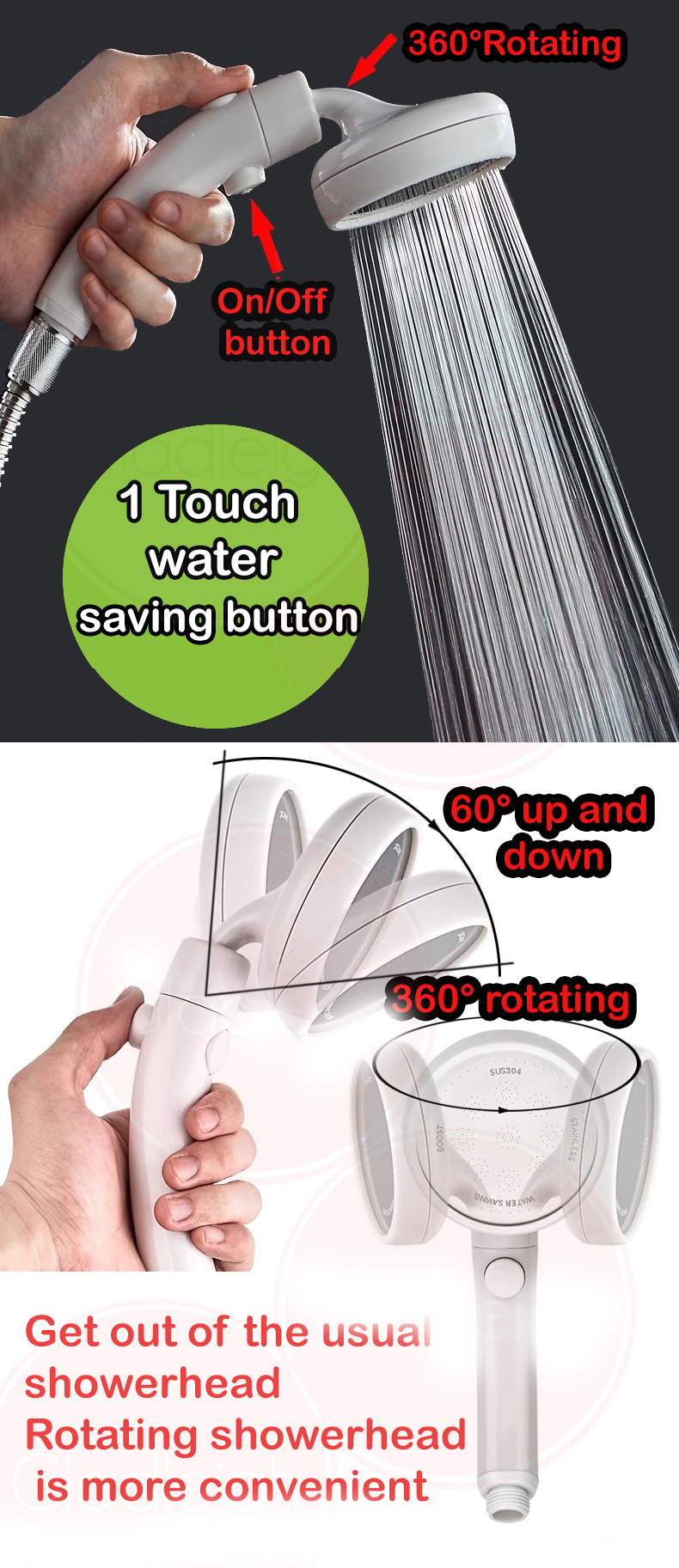 Το μοναδικό τηλέφωνο ντουζ που σας επιτρέπει να έχετε την απόλυτη άνεση μέσα στην μπανιέρα σας! Διαθέτει ειδικό διακόπτη εξοικονόμησης νερού και 360ᵒ οριζόντια περιστροφή για να το ρποσαρμόζετε στην ντουζιέρα ή το μπάνιο σας!