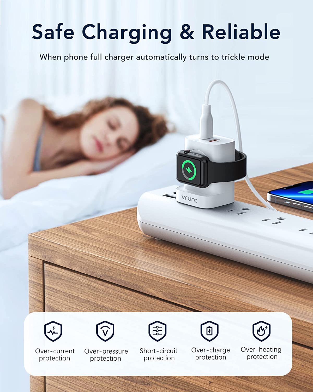 Συμβατό με όλες τις συσκευές USB, συμπεριλαμβανομένων των iPhone και τηλέφωνα Samsung, tablet, Nintendo Switch και άλλα. Βάση φόρτισης για Apple Watch Series 7/6/5/4/3/2/1/SE.