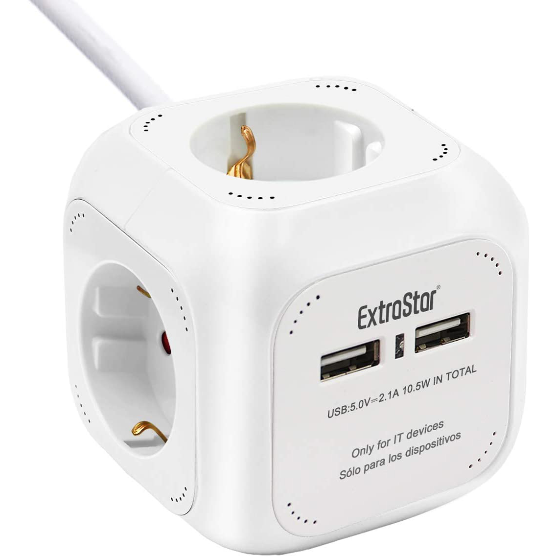 Πολύπριζο 4 Θέσεων με 2 x USB ExtraStar© Extended με Καλώδιο 1,5m & Βάση Στήριξης Λευκό