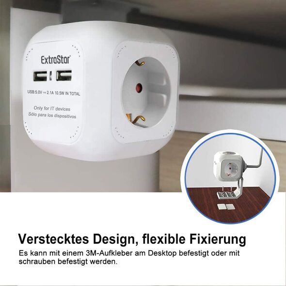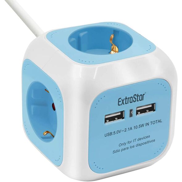 Πολύπριζο 4 Θέσεων με 2 x USB ExtraStar© Extended με Καλώδιο 1,5m & Βάση Στήριξης Μπλε