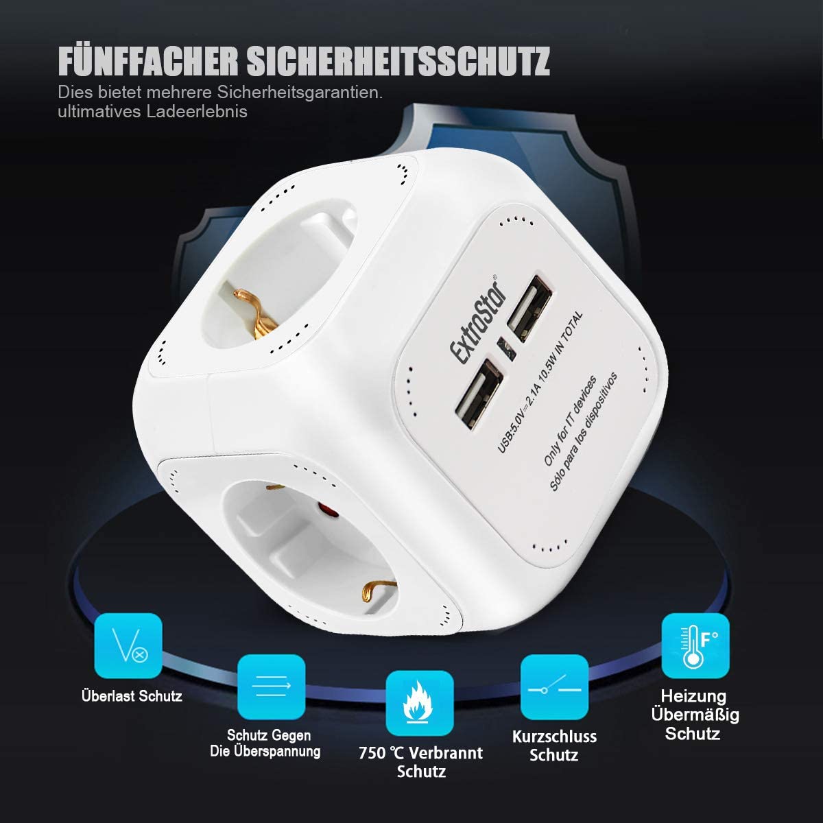 Πολύπριζο 4 θέσεων με ειδικό σχεδιασμό, καλώδιο 1.5m & βάση στήριξης.