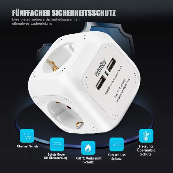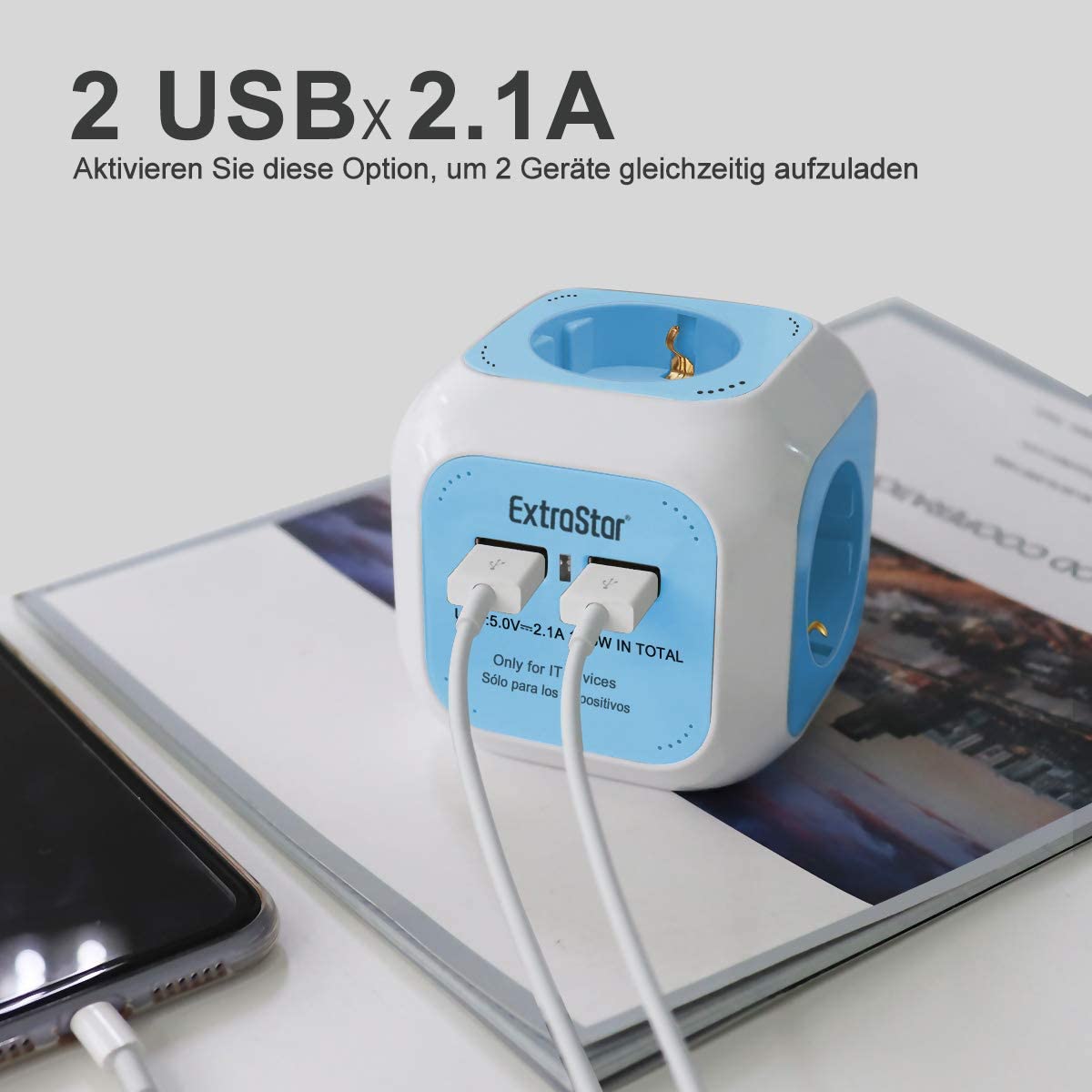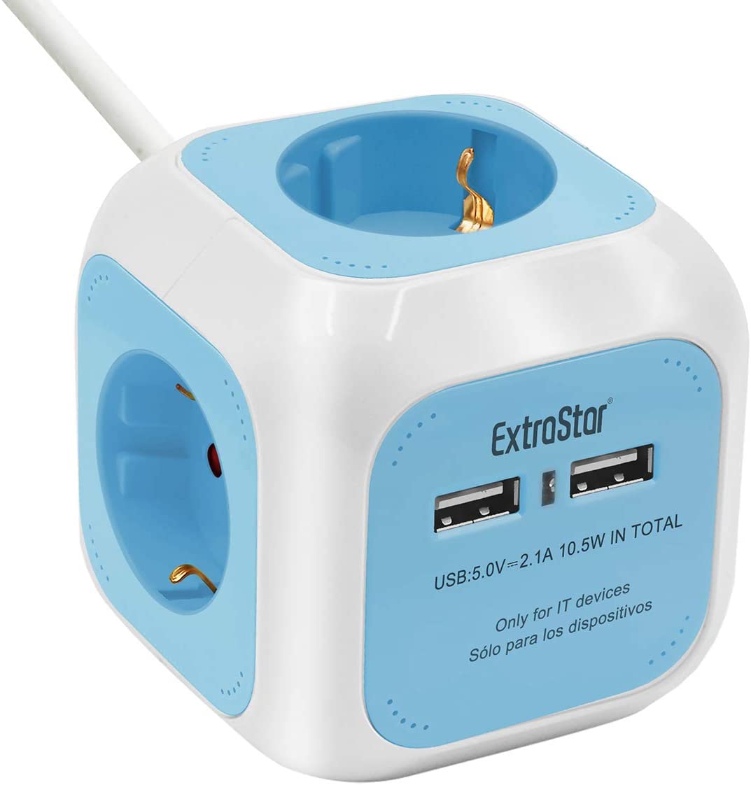 Πολύπριζο 4 Θέσεων με 2 x USB ExtraStar© Extended με Καλώδιο 1,5m & Βάση Στήριξης Μπλε