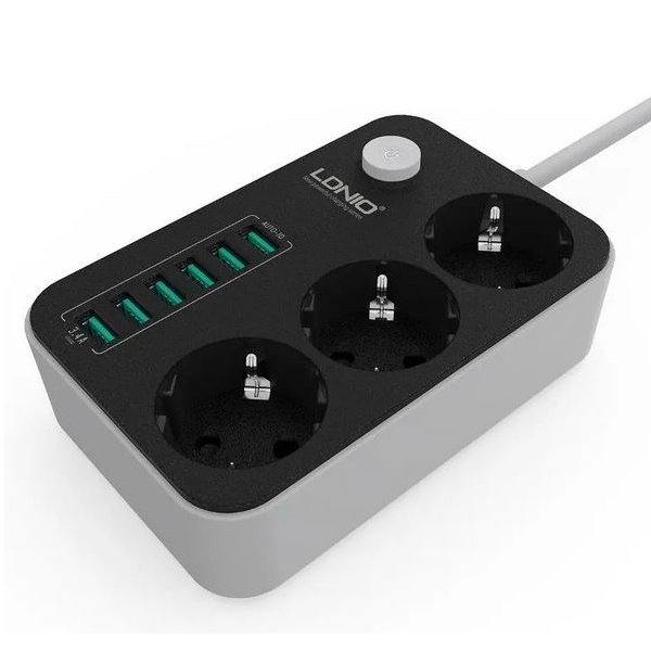 Πολύπριζο Ασφαλείας 3 Θέσεων με 6 Θύρες USB 3.4A LDNIO®