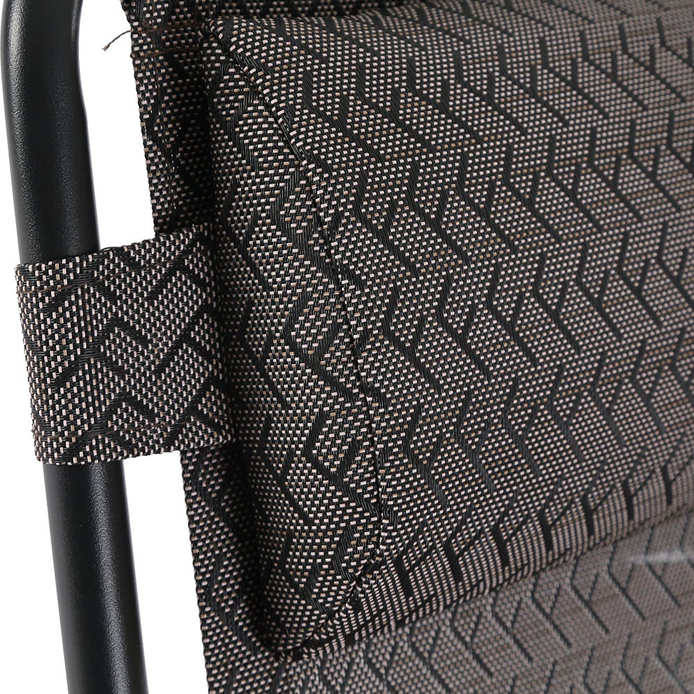 Είναι κατασκευασμένη από ενισχυμένο σκελετό με σωλήνες υψηλής αντοχής 22mm και ύφασμα Dura Mesh και ειδικό σύστημα δεσίματος που χαρίζει ελαστικότητα, επιτρέποντας στην πλάτη να προσαρμόζεται στο σχήμα του σώματος μας προσφέροντας αξεπεραστη άνεση, με ενσωματωμένο ρυθμιζόμενο μαξιλάρι/προσκέφαλο!