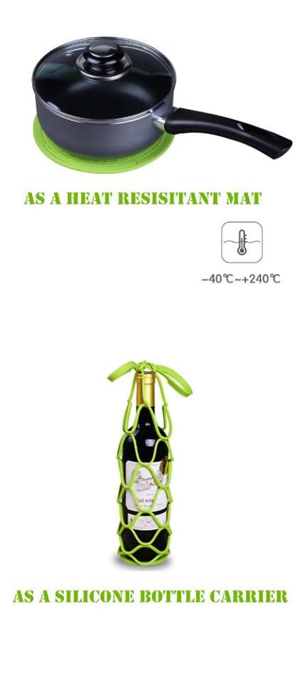 Μαζεύει εύκολα και λειτουργεί ως θερμομονωτική βάση σιλικόνης (για να ακουμπήσετε την κατσαρόλα σας) προστατεύοντας το τραπέζι σας.