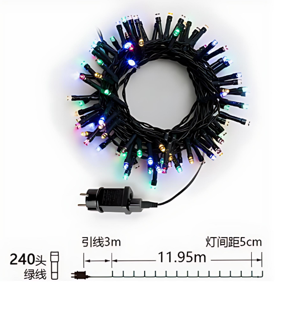 Δώστε στις γιορτές σας την απαραίτητη λάμψη με αυτά τα πολύχρωμα χριστουγεννιάτικα λαμπάκια μήκους 11.95 μέτρων, που διαθέτουν 240 LED υψηλής φωτεινότητας.