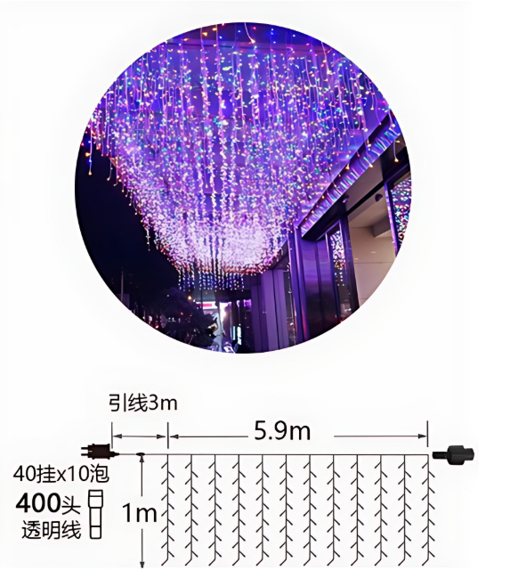 Με μήκος 5.9 μέτρων και σχεδιασμό τύπου βροχής, φωτίζουν αρμονικά κάθε παράθυρο, μπαλκόνι, τοίχο ή κήπο, χαρίζοντας μια αίσθηση ζεστασιάς και εορταστικής λάμψης.