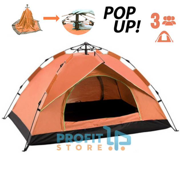 Pop Up Αυτόματη Σκηνή 1ος λεπτού Igloo Camping 3 Ατόμων - Καλοκαιρινή Αδιάβροχη - 200x150x130εκ Πορτοκαλί