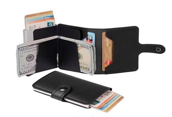 Το πορτοφόλι , μπορεί και να ανασηκώνει τις κάρτες ενώ είναι κλειστό , ετσι δεν εκτίθεται το υπόλοιπο περιεχόμενο !