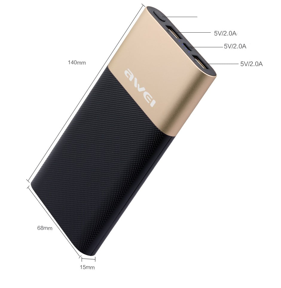 Το Powerbank της AWEI διαθέτει 2 USB εξόδους για να φορτίζετε δύο συσκευές ταυτόχρονα π.χ. το κινητό και το tablet σας και όχι μόνο !