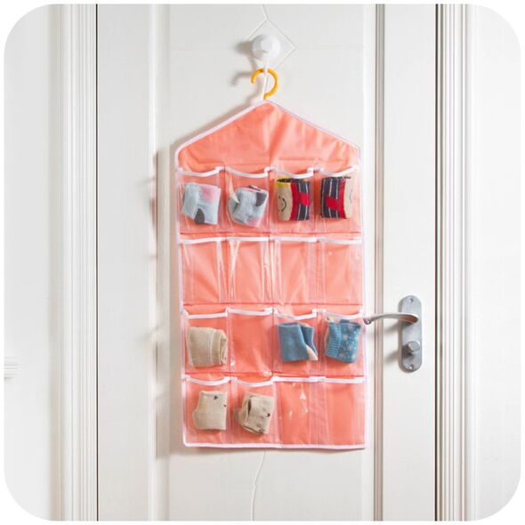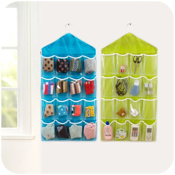 Πρωτότυπη κρεμαστή θήκη για τα εσώρουχα, τις κάλτσες, τα κοσμήματα, τα αξεσουάρ, τις παντόφλες σας και ότι άλλο βάλει ο νούς σας, με 16 διάφανες τσέπες από βινύλιο.