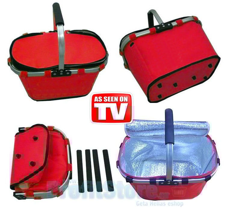 Εξαιρετικά πρακτικό αναδιπλούμενο καλάθι με αλουμινένιο σκελετό, ισοθερμικό, αδιάβροχο, ανθεκτικό. Κατάλληλο για να μεταφέρετε τρόφιμα, ποτά, αναψυκτικά. Διατηρεί την θερμοκρασία στο εσωτερικό σταθερή. Ιδανικό για την παραλία, το κάμπινγκ, την εξοχή, το αυτοκίνητο, το σκάφος.
