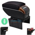 Premium Κονσόλα Χειρόφρενου & Πολύ Φορτιστής USB με Εσωτερικό Φωτισμό, Ποτηροθήκη, Τασάκι Universal Στήριγμα αγκώνα για ανάμεσα στα καθίσματα - Τεμπέλης Αυτοκινήτου Μαύρο με Σχέδιο Ξύλου