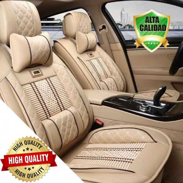 Ολοκληρωμένο υπερπολυτελές σετ καλυμμάτων αυτοκινήτου από Pu Leather/Υφασμα Μπεζ, εξαιρετικής ποιότητας, το οποίο περιλαμβάνει συνολικά 7 τεμάχια.