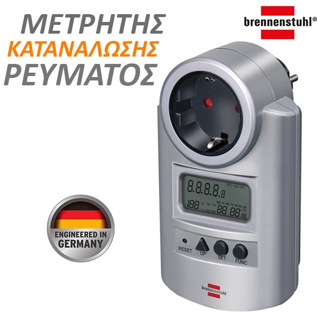Πρίζα σούκο με μετρητή κατανάλωσης ενέργειας για μεμονωμένες συσκευές, με την εγγύηση ποιότητας της γερμανικής Brennenstuhl.