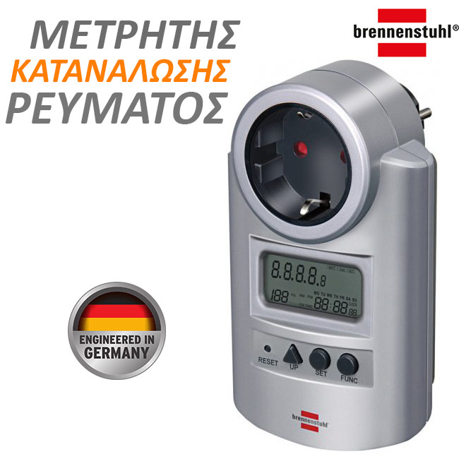 Πρίζα σούκο με μετρητή κατανάλωσης ενέργειας για μεμονωμένες συσκευές, με την εγγύηση ποιότητας της γερμανικής Brennenstuhl.
