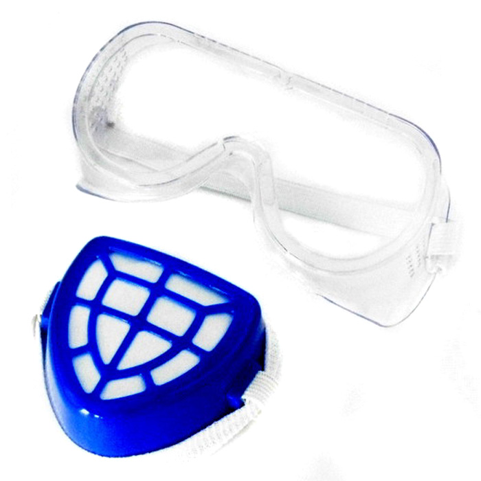Γυαλιά που σας παρέχουν πλήρη προστασία στα μάτια και μάσκα μύτης μαζί,για να φιλτράρει τον αέρα που αναπνέετε και να συγκρατεί τις σκόνες.