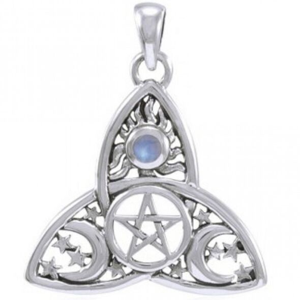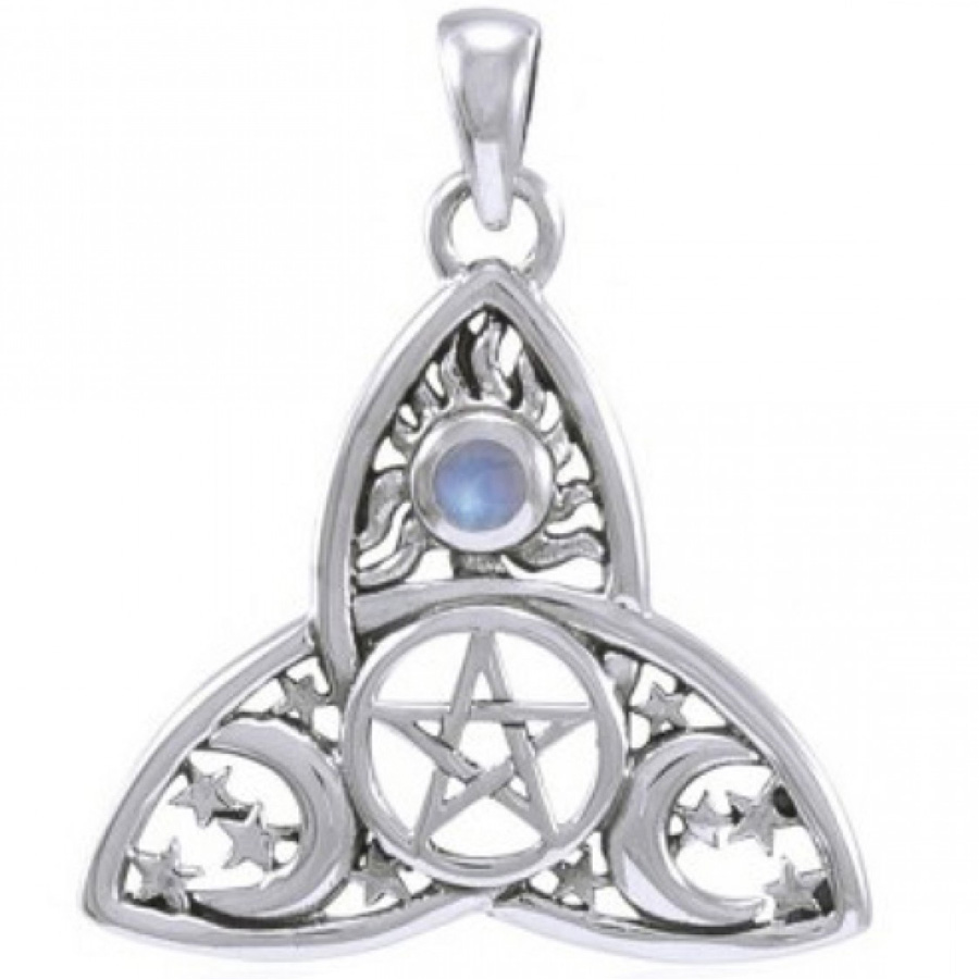 Προστατευτική Τρικουέρτα με Φεγγαρόπετρα για Δύναμη, Εξουσία και Διαίσθηση - Ασήμι 925°
