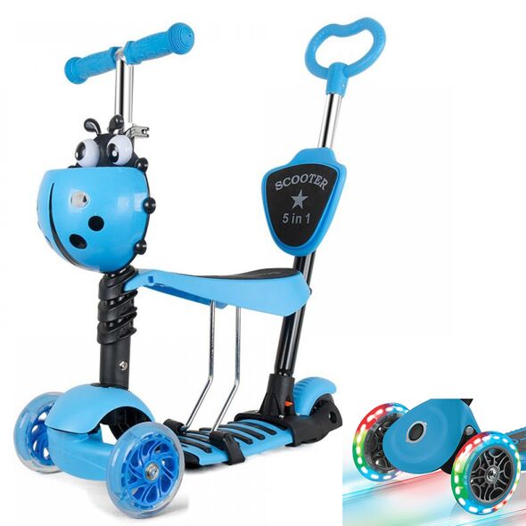 Αναδιπλούμενο πατίνι 4 σε 1 - πολυμορφικό όχημα που μπορεί να χρησιμοποιηθεί ως: περπατούρα όπου το καθισματάκι έχει την δυνατότητα ρύθμισης ύψους, πατίνι με ρυθμιζόμενο τιμόνι σε χαμηλή θέση και μετέπειτα σε πιο ψηλή.