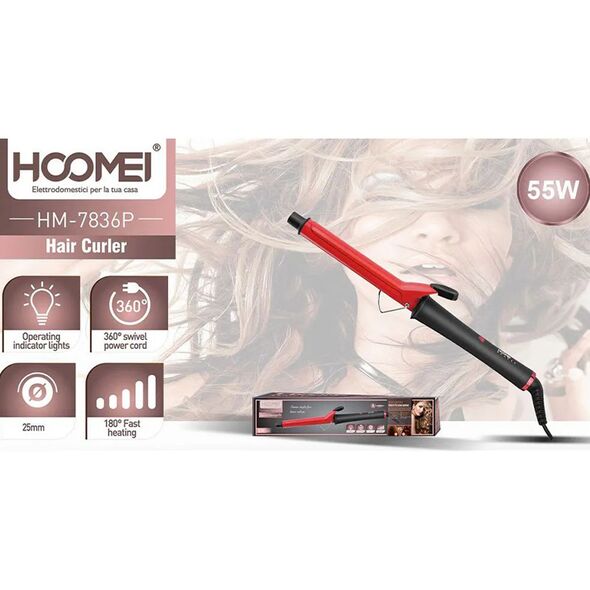 Ψαλίδι Μαλλιών για Μπούκλες 55W με Περιστρεφόμενο Καλώδιο 360° και Κεραμική Κεφαλή 25mm Hoomei - Κόκκινο