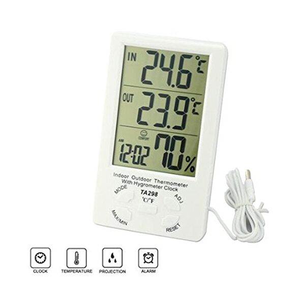Ψηφιακός μετρητής θερμοκρασίας και υγρασίας με ρολόι, ημερολόγιο και ξυπνητήρι.