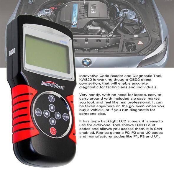 Ψηφιακό Επαγγελματικό Διαγνωστικό Αυτοκινήτου, OBD II, EODB, με Καλώδιο & Οθόνη, Konnwei KW820