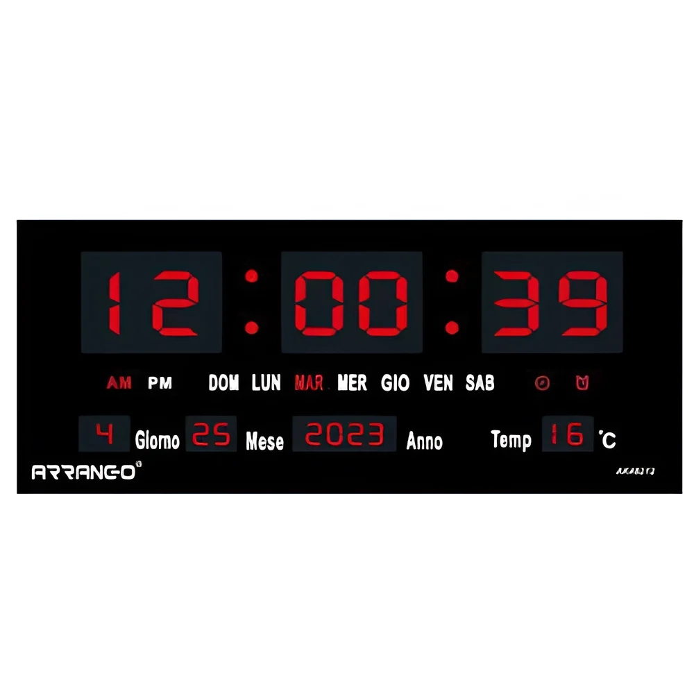 Ψηφιακό LED ρολόι τοίχου Arrango με μεγάλη οθόνη 15.1 x 36.8cm, κόκκινο φωτισμό, ένδειξη ώρας, ημερομηνίας & θερμοκρασίας. Ιδανικό για σπίτι και γραφείο, με δυνατότητα τοίχου ή επιτραπέζιας τοποθέτησης.