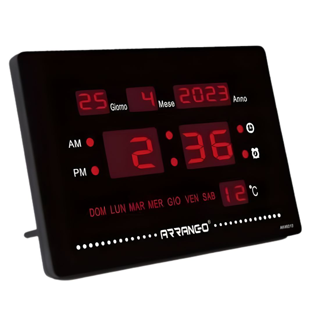 Ψηφιακό LED ρολόι τοίχου Arrango με μεγάλη οθόνη 23.5cm, κόκκινο φωτισμό, ένδειξη ώρας, ημερομηνίας & θερμοκρασίας. Ιδανικό για σπίτι και γραφείο, με δυνατότητα τοίχου ή επιτραπέζιας τοποθέτησης.