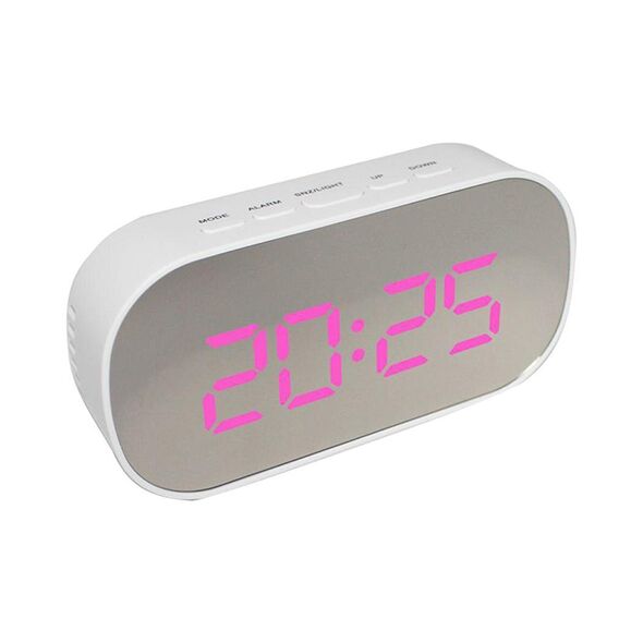 Ψηφιακό Ρολόι / Ξυπνητήρι Καθρέπτης με LED Οθόνη, Επιτραπέζιο - Digital Led Mirror Clock - Λευκό / Ροζ