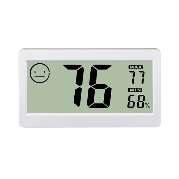 Other Features: Indoor temperature, indoor humidity; 'C / 'F display switch; Indoor highest / lowest temperature memory function, comfort level display; With a magnet on the back for convenient to attach to metal surface.