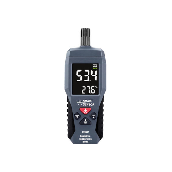 Ο Ψηφιακός μετρητής υγρασίας Smart Sensor μετράει την υγρασία και τη θερμοκρασία ταυτόχρονα. Εμφανίζει τη μετρούμενη τιμή στη μεγάλη οθόνη LCD.