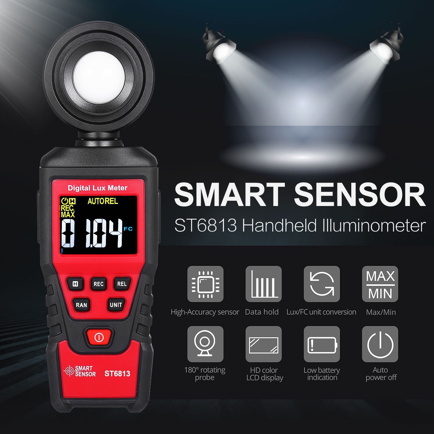 Ενσωματώνει τεχνολογία μέτρησης υψηλής ακρίβειας με μέτρηση φωτεινότητας 1 έως 100.000 Lux και 1 έως 10.000 FC.