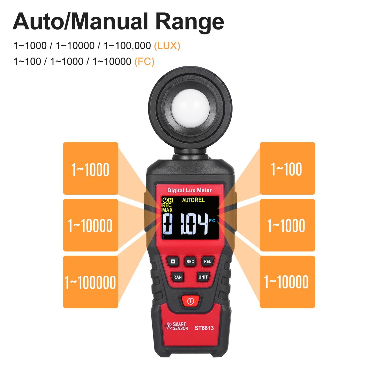 Διαθέτει αυτόματη / χειροκίνητη λειτουργία για ακριβή μέτρηση και μετατροπή μονάδων μεταξύ Lux και FC.