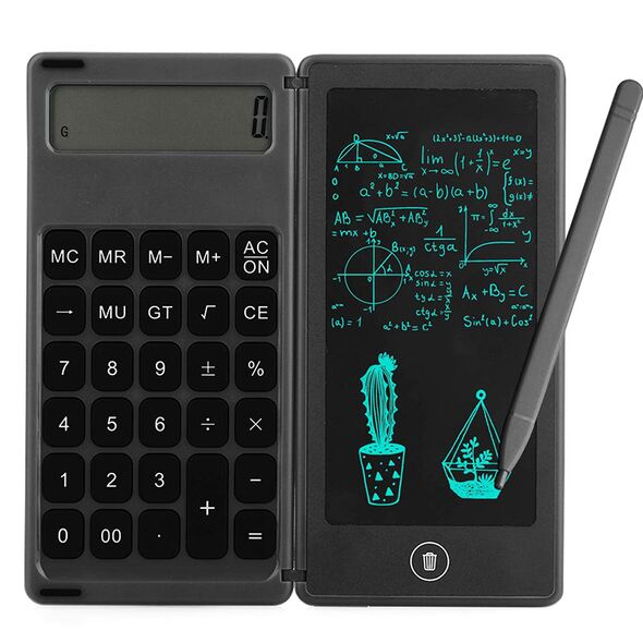 Είναι αναδιπλούμενη και ενώ από την μια μεριά θα βρείτε μια κλασσική αριθμομηχανή, στην άλλη μεριά θα βρείτε έναν LCD πίνακα στον οποίο μπορείτε να γράψετε και να σχεδιάσετε με την ειδική γραφίδα και με το πάτημα ενός κουμπιού να τα σβήσετε όλα!