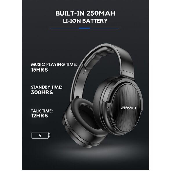 Μοντέρνα Πτυσσόμενα Ακουστικά Bluetooth Stereo με Αποσπώμενο Καλώδιο AUX Μαύρα