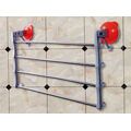 - Μία πτυσσόμενη πλαστική απλώστρα για τις πετσέτες του μπάνιου σας με όμορφο design σε γκρι χρώμα με πορτοκαλί βεντούζες.