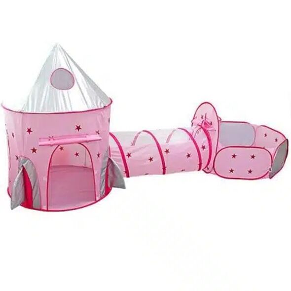 Πτυσσόμενη Φορητή Παιδική Σκηνή - Κάστρο με Τούνελ σε Ροζ Χρώμα