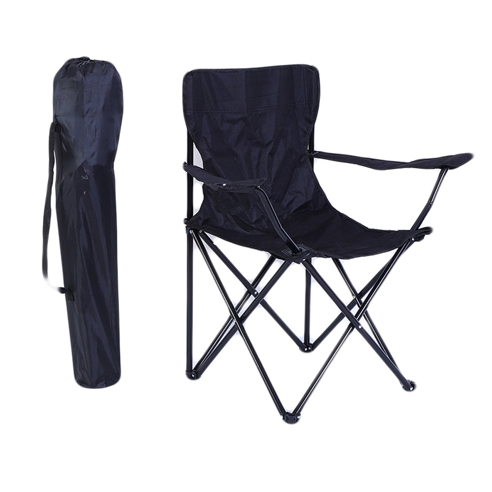 Πτυσσόμενη Καρέκλα Παραλίας - Ψαρέματος Αλουμινίου με Ποτηροθήκη Μαύρη