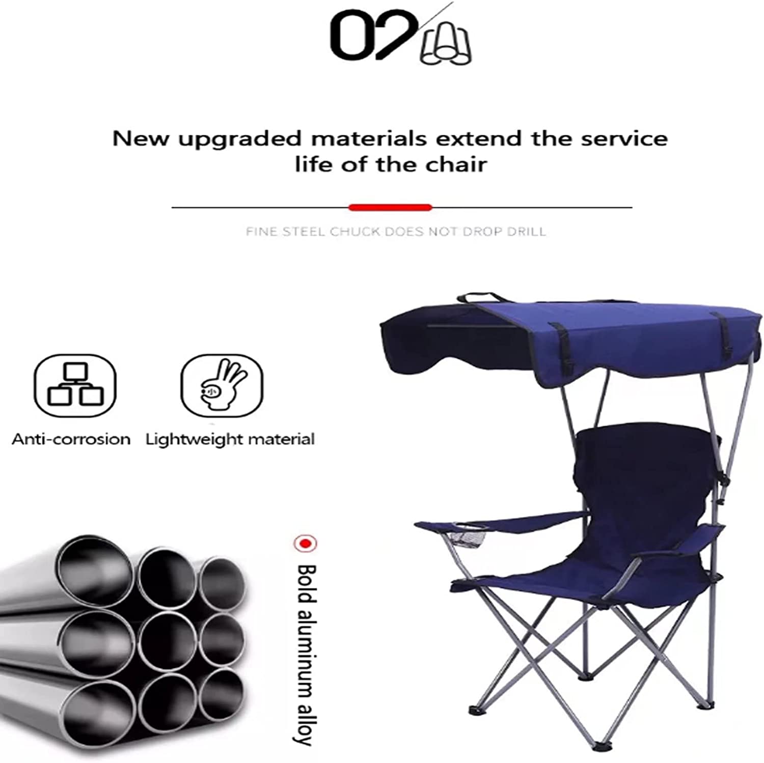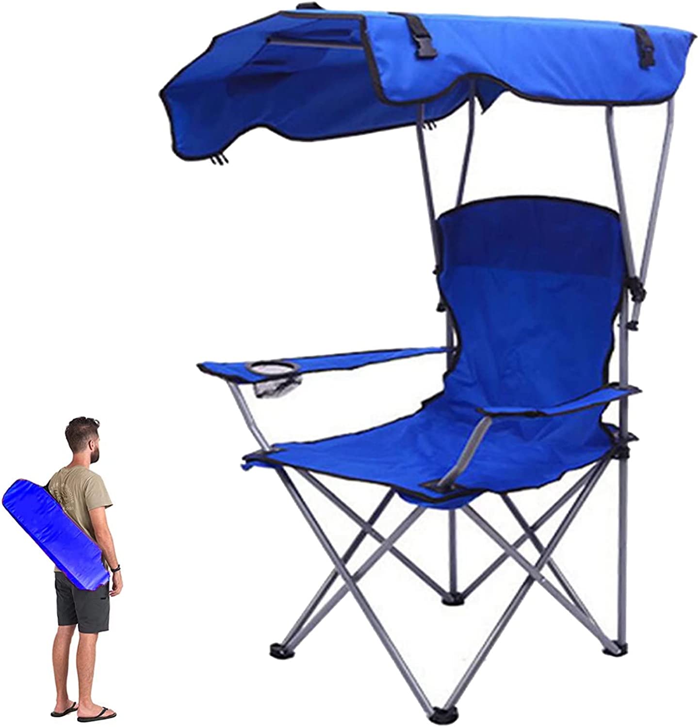 Πτυσσόμενη Καρέκλα Ψαρέματος - Κάμπινγκ - Παραλίας Αλουμινίου με Ποτοροθήκη & Τέντα σε Τσάντα Μεταφοράς Μπλε