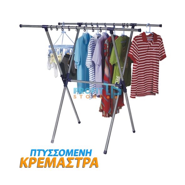 Νέα ενισχυμένη, ανθεκτική μεταλλική κρεμάστρα σιδερωμένων ρούχων με δύο μπάρες πτυσσόμενες από 80cm έως 136cm.