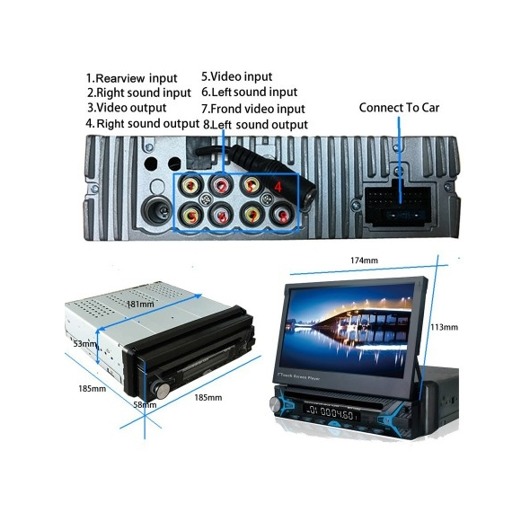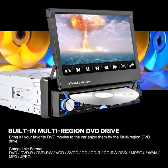 Multimedia DVD με πτυσσόμενη touch Οθόνη 7 ιντσών LCD HD 1DIN για το ταμπλό του αυτοκινήτου! Διαθέτει ενσωματωμένο ενισχυτή ηχείων 4 x 60w.