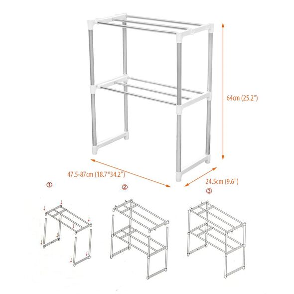 Πτυσσόμενη Ραφιέρα Ρυθμιζόμενου Μήκους 47,5-87cm Κουζίνας, Μπάνιου, Εισόδου - Βάση Οργάνωσης - Αποθήκευσης Μεταλλική - Multifunction Telescopic Rack