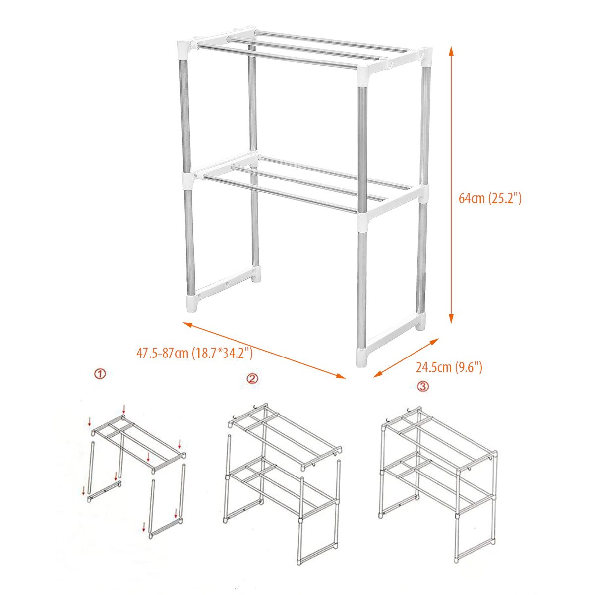 Πτυσσόμενη Ραφιέρα Ρυθμιζόμενου Μήκους 47,5-87cm Κουζίνας, Μπάνιου, Εισόδου - Βάση Οργάνωσης - Αποθήκευσης Μεταλλική - Multifunction Telescopic Rack